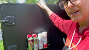 For our storage bays, these wire command shelves have been incredible for organizing spray cans and tools. Unlike solid shelves, the wire design allows drainage, which is perfect for wet bays. We’ve had similar ones in our bathroom for almost two years, and they haven’t rusted or budged.