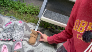 This might be our silliest RV accessory, but it brings so much joy! We put fun shoes on our RV steps – boots, sandals, light-up shoes, monster feet, holiday-themed options. It makes us smile, makes other people smile, and that makes us happy. Sometimes RV life is about the fun little touches! Our steps take Size 6 toddler shoes.